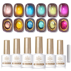 BORN PRETTY 6 Bottles 7 ml Plane Trees Colored Cat Magnetic Gel ultra Shine Soak Off UV Gel Nail Art Varnish.