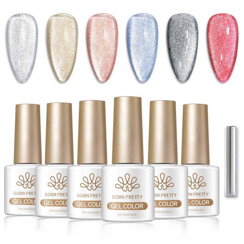 BORN PRETTY 6 Bottles 7ml Winter's Whisper Crystal Cat Magnetic Gel ultra Shine Soak Off UV Nail Polish.