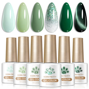 6 Bottles BORN PRETTY 7ml Still green Nail Gel Polish Nail Supplies Vernis Semi Permanent Nail Art Manicure Soak Off LED UV Gel Nail Varnishes.