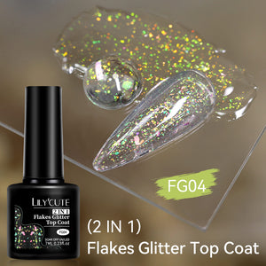 1 Bottle LILYCUTE 7ml 2 IN 1 Flakes Glitter Top Coat.