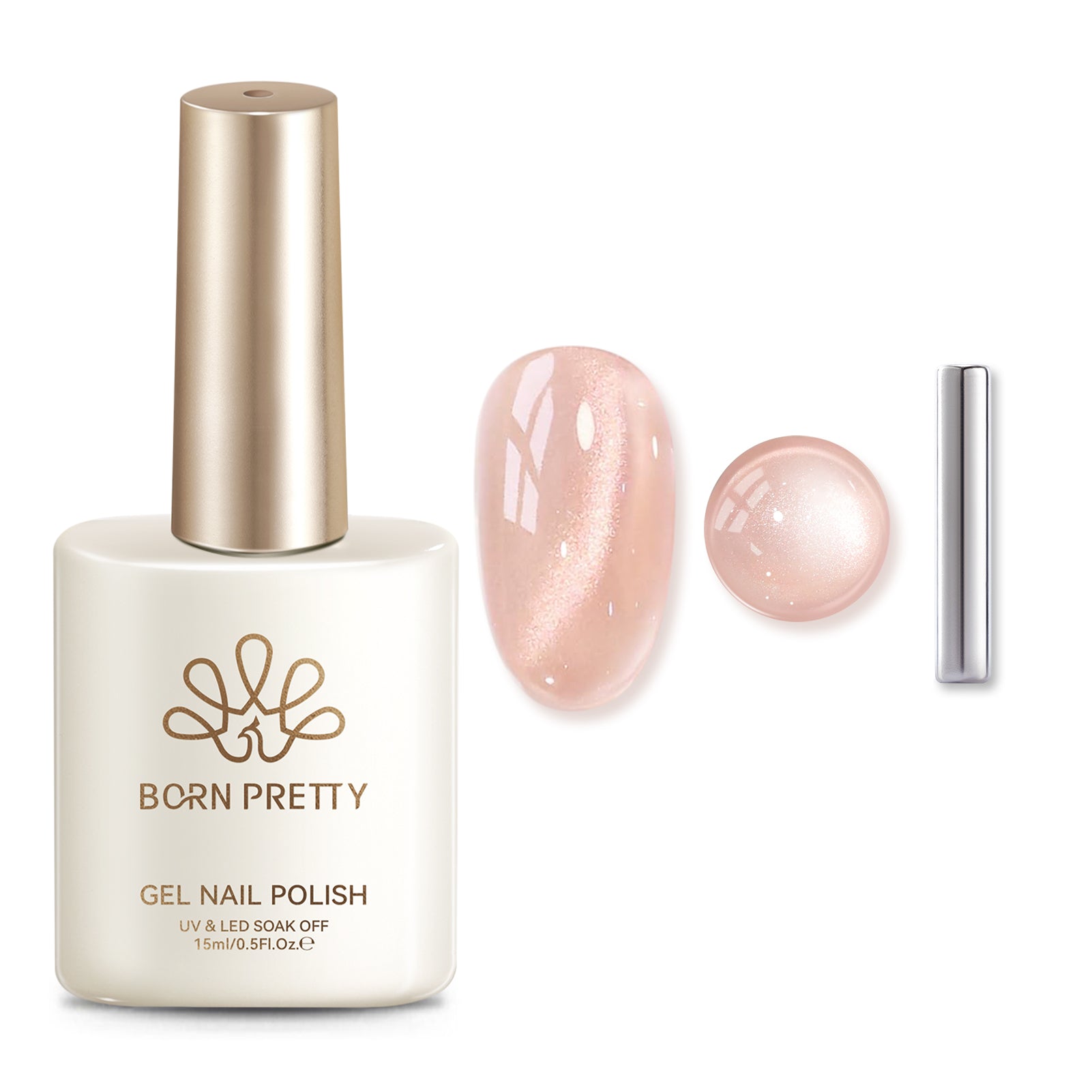 BORN PRETTY 1 Bottle 15 ml Peach Coral Sea Glass Bead Cat Magnetic Gel ultra Shine Soak Off UV Gel Nail Art Varnish.
