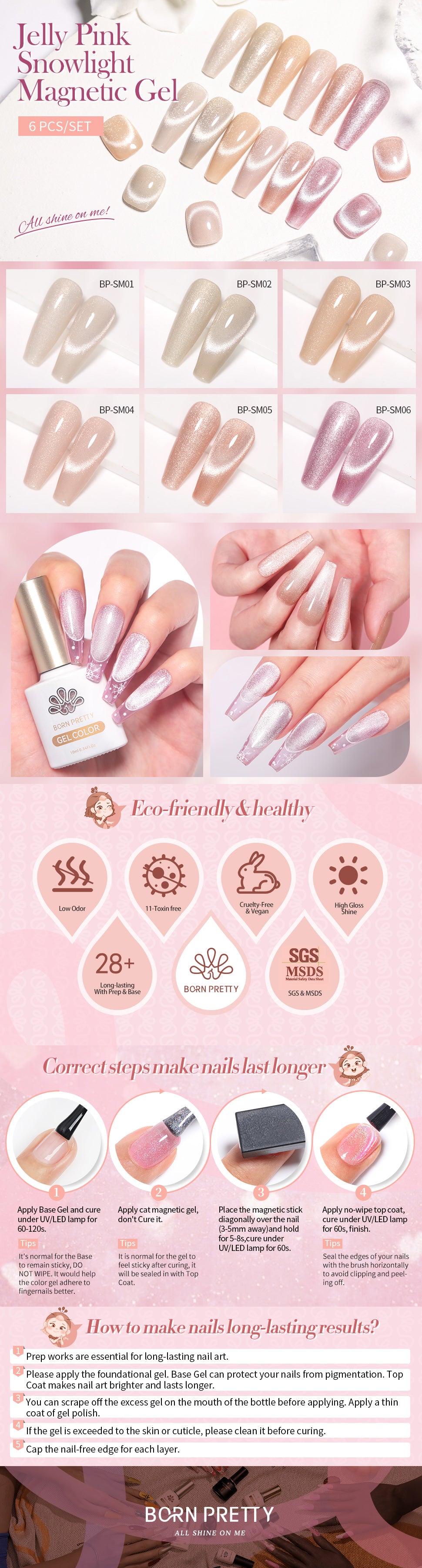 6 Colors Jelly Pink Snowlight Cat Magnetic Gel Polish Set 10ml