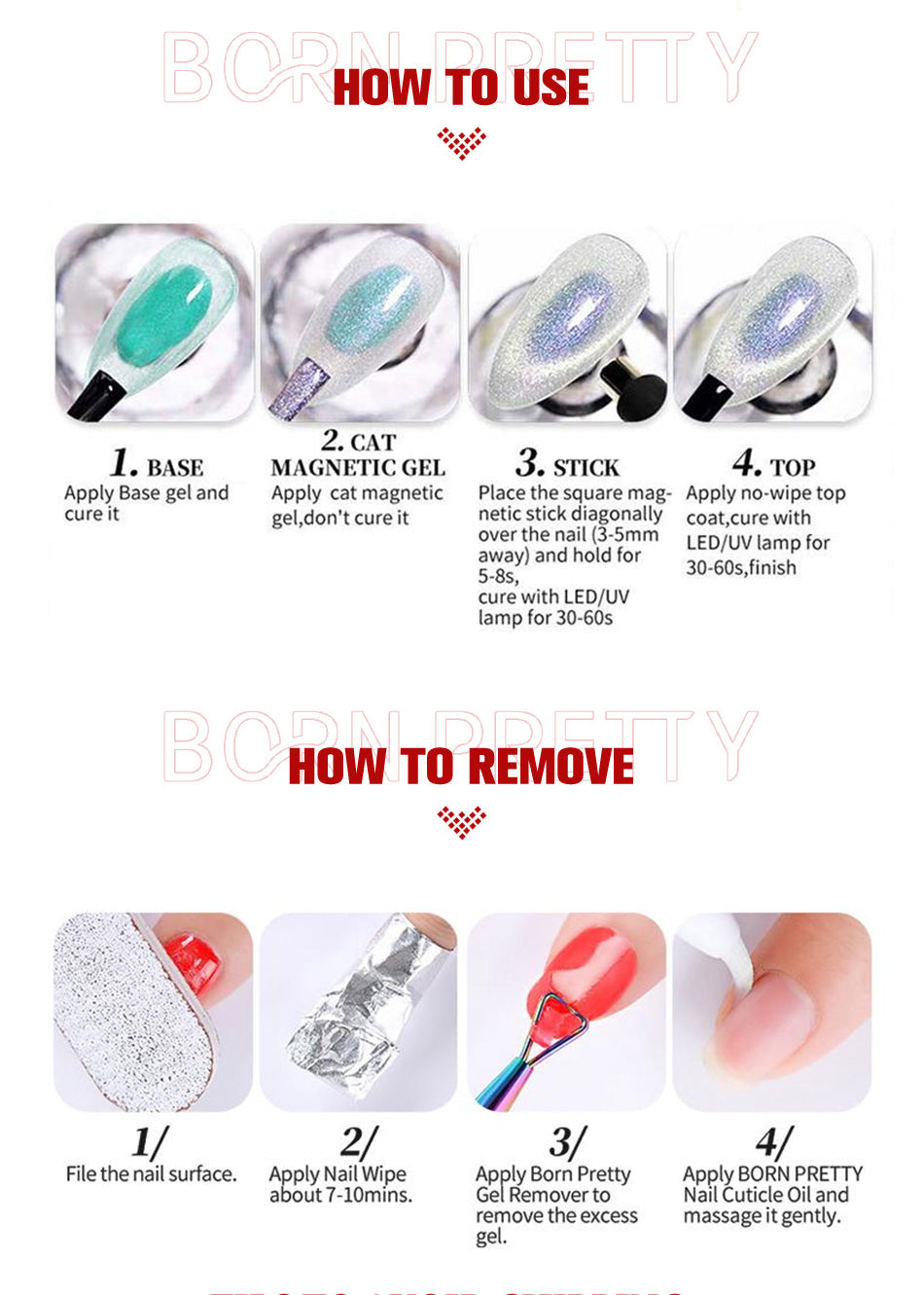 Step 5. Apply second layer Cat Magnetic Gel and use magnetic stick? push the shape again, then cure in 30-60s.